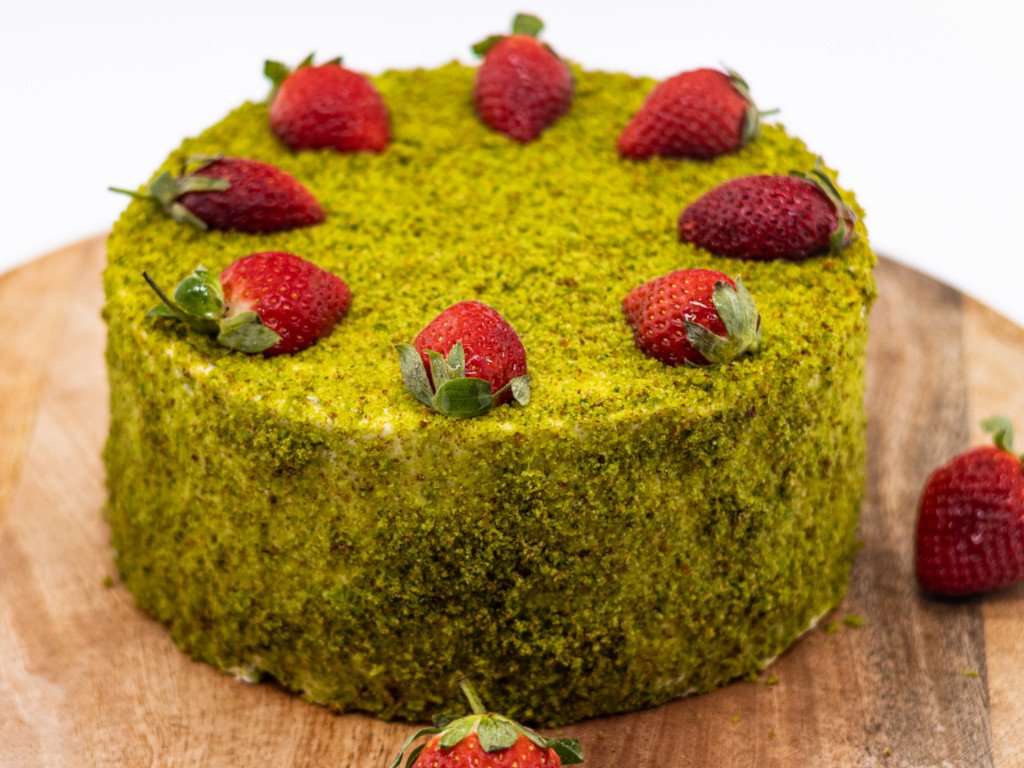 Mechový dort - korpus je vyroben ze špenátu v kombinaci s prémiovými surovinami jako je mouka a vejce. Krém je z mascarpóne v kombinaci s bílou čokoládou a smetanou. Ve Vrchní části doplněný o ovoce.